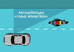 Соқыр аймақтар — жазатайым оқиғалардың бірінші себебі! Соқыр аймақтар көлік құралдарының толық оң/сол ұзындығына сәйкес келеді. Жүргізуші біреудің велосипедпен келе жатқанын көре алмайды. Сондай-ақ жүк көліктері мен автобустарда велосипедшілер көрінбейтін айтарлықтай соқыр аймақтар бар.