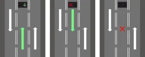 — Желтая диагональная стрелка указывает, что нужно перестроиться на другую полосу