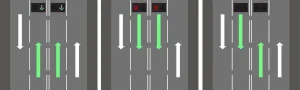 2) При наличии двух реверсивных полос примыкающих с обеих сторон к линии разметки 1.9:Примеры:
