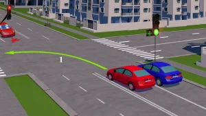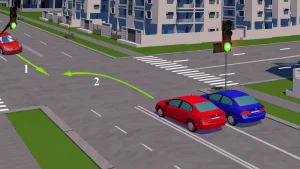6) Если в основной секции горит запрещающий сигнал, при движении под разрешающую стрелку нужно уступить дорогу автомобилям, движущимся с других направлений, и пешеходам.