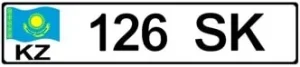 Мемлекеттік тудың үлгісі бар, «SK» сериясының 1К – үлгісі үшін мемлекеттік тіркеу нөмірлік белгілерінің фоны (негізгі түсі) ‒ ақ түсті, цифрлық және әріптік символдар, «KZ» айыру белгісі ‒ қара түсті.