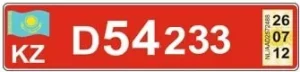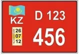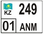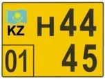 Үлгі 3Д![]() | Қазақстан Республикасының аумағында тіркелген шетелдіктер қатысатын заңды тұлғалардың, шетелдіктер мен азаматтығы жоқ адамдардың мотокөлік құралдарына арналған «Н» және «Ғ» сериялы мемлекеттік тіркеу нөмірлік белгісі. |