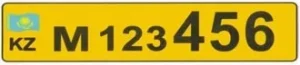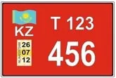 Үлгі 7![]() | жол жүрісіне қатысуға уақытша рұқсат берілген көлік құралдары үшін мемлекеттік тіркеу нөмірлік белгісі. |