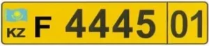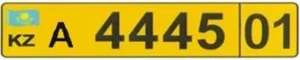 | Дипломатиялық корпус, шетелдіктер және азаматтығы жоқ тұлғалар, сондай-ақ шетелдік қатысумен кәсіпорындардың Қазақстан Республикасындағы шетелдік заңды тұлғалардың филиалдары мен өкілдіктерінің көлік құралдарының мемлекеттік тіркеу нөмірлік белгілері | |