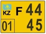 «НС», «Н», «М» и «F» серияларының 1Д және 2Д үлгілері, «Н», «F», «M» және «НС» серияларының 3Д, «Н» және «F», «М» және «НС» серияларының 5Д (5ДА)–үлгісі үшін мемлекеттік тіркеу нөмірлік белгілерінің фоны (негізгі түсі) – сары, «KZ» айыру белгісі, цифрлық және әріптік символдар, бөлу жолағы, жиектеме сызығы мен жиегі – қара түсті.