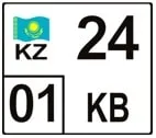 Мемлекеттік тудың үлгісі бар, 1С, 2С, 3С – үлгілері үшін мемлекеттік тіркеу нөмірлік белгілерінің фоны (негізгі түсі) ‒ көк түсті, цифрлық және әріптік символдар, «KZ» айыру белгісі ‒ ақ түсті.